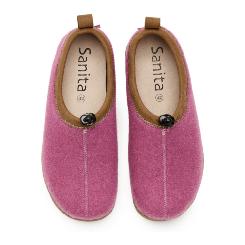 - Give your feet the comfort they deserve wearing the Sanita Samso Slippers. The slip-on style wool blend felt slipper shoe comes with a wool upper, faux leather lining, a microfiber collar with adjustable toggle, and a removable cork/latex footbed. The waterproof natural rubber outsole and reinforced toe cap add durability.