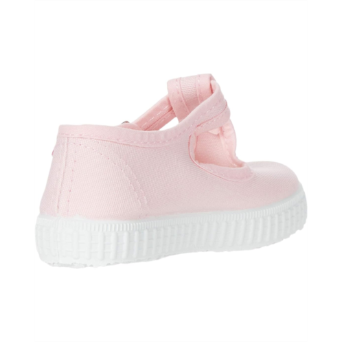 - Canvas upper in a T-strap silhouette with a branded tag decorating the side.