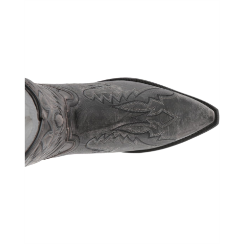 - Distressed leather upper with Western-inspired stitching on shaft.