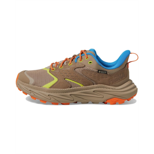 - The Hoka Kids Anacapa 2 Low GTX Shoes are the perfect hiking companion. These round-toe shoes feature a leather upper with a lace-up closure for a secure fit, textile lining, and a polyurethane insole. The PFC-Free water repellency treatment ensures a tough performance in wet weather conditions and the ankle pull tab allows easy donning and doffing.
