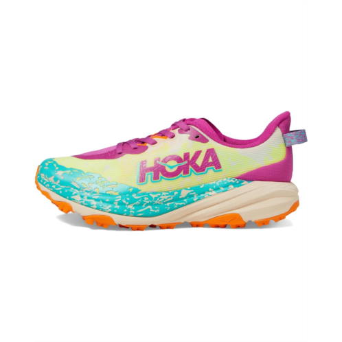 - Built off the blueprints of the Hoka Original Trail Icon, the Hoka Kids Speedgoat 6 shoes are lighter than ever with a 50% sugarcane EVA midsole and feature deeper durable 4.5mm lugs for trail traction. The polyester upper of these sneakers is designed with a lace-up closure for a secure fit. Offering all-day comfort, the EVA insole and textile lining provide added comfort. Colorful and comfortable, these lace-up sneakers are a must-have for your kid's footwear collection.