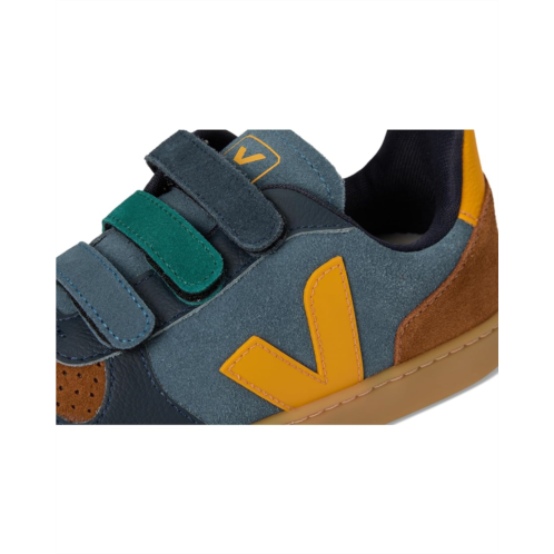 - Add a magnificent vibe to your little one's feet with VEJA Kids Small V-10 sneakers, designed with hook-and-loop closure, webbing pull tab on the heel counter, and suede and chrome-free leather upper. The brand detailing on the sides, tongue, and footbed offers a solitary glance.