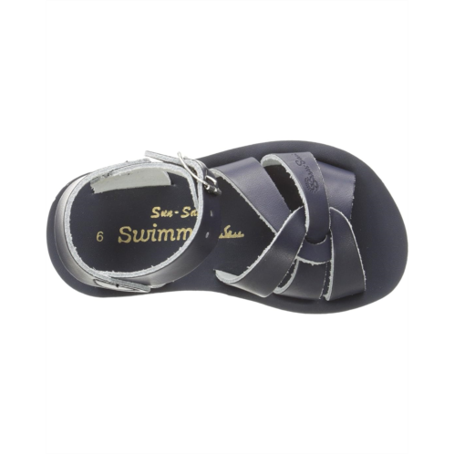 - The Salt Water Sandal by Hoy Shoes Sun-San Swimmer (Toddler/Little Kid) is a classic two-strap sandal perfect for younger feet. An adjustable ankle strap makes them great for both wide and narrow feet. She'll wear them comfortably all day long thanks to the lightweight, cushioned urethane sole. Rust-proof brass buckles and scuff-resistant water friendly genuine leather make them ideal for in-and-out of water wear.