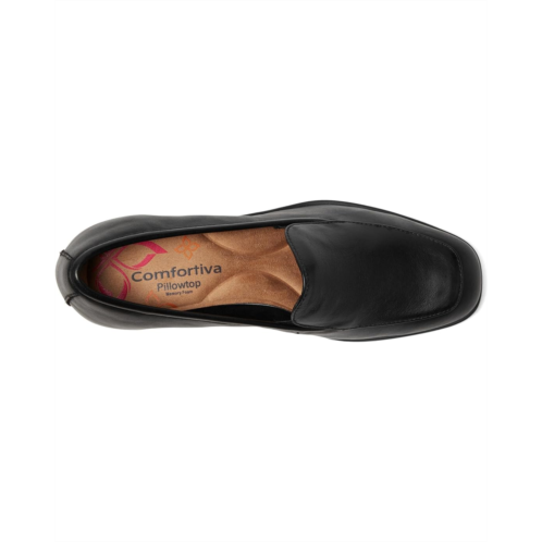 - The Comfortiva Hailey shoes are moc toe-shaped pumps that are perfect to pair with different outfits and styles. These heeled pumps are made of a padded microfiber memory foam footbed and faux suede lining for all-day comfort. The leather upper of these shoes features a slip-on style for easy on and off. Get ready for a comfortable day out wearing these leather pumps.