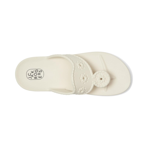 - The Jack Rogers Jacks Eva features a lightweight, waterproof design made from ethylene vinyl acetate. It offers a slip-on fit and has an open, round toe silhouette. In addition, the signature whipstitching and rondelle details that define the classic look.