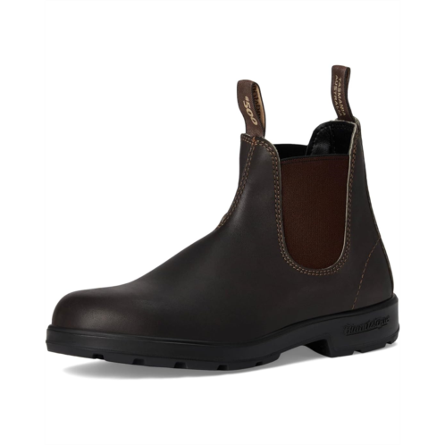 - Legendary comfort meets modern versatility with the Blundstone BL500 Ankle Boots. Forever iconic and built to last, these authentic leather Chelsea boots are built to go wherever life takes you, whether in urban cityscapes or off-road in the wild. The premium water-resistant leather upper is complemented by brand-embossed pull tabs and round toe shape.