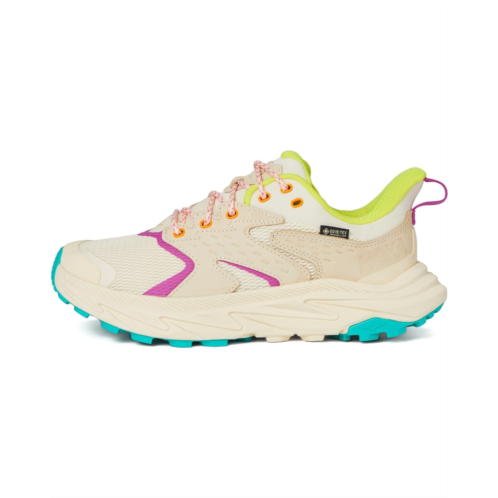 - The Hoka Kids Anacapa 2 Low GTX Shoes are the perfect hiking companion. These round-toe shoes feature a leather upper with a lace-up closure for a secure fit, textile lining, and a polyurethane insole. The PFC-Free water repellency treatment ensures a tough performance in wet weather conditions and the ankle pull tab allows easy donning and doffing.