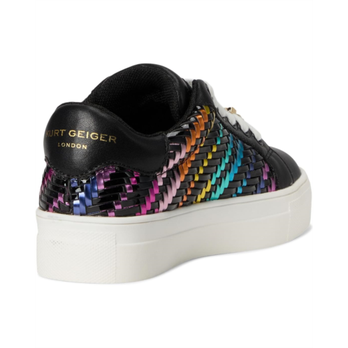 - Step up their style with the Kurt Geiger London Kids Mini Laney Weave Sneaker! This standout design features a woven rainbow metallic side panel that adds a bold pop of color against the sleek black leather upper. Signature jeweled lace embellishments bring extra sparkle, while the chunky white platform sole provides all-day comfort.