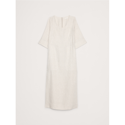 - A little linen moment. This classic shift dress is cut from certified European flax linen with kaftan-like details: wide sleeves, an easy fit, and high slits at the sides.