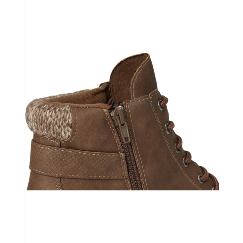 - The Blowfish Malibu Kinsley Zip Short Boot blends laidback utility with signature SoCal flair, making it a stylish staple for cooler days. Designed with a faux leather upper and a cozy sweater knit collar, it offers a relaxed yet polished look. The zippered side closure ensures easy on-and-off wear, while functional laces and a decorative metallic buckle at the ankle add visual interest and adjustability. Featuring a round toe and a vegan construction, the Kinsley boot delivers comfort.