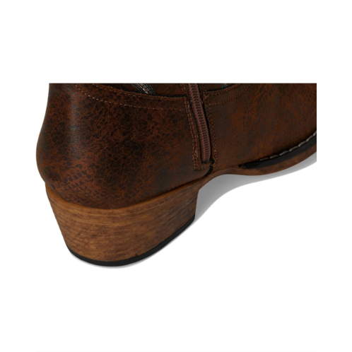 - Short Western boot is made of vintage faux leather upper.