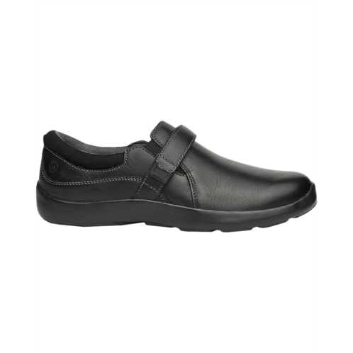 - Slip-on design with closed rounded toe features dual gore panels and hook-and-loop strap for a secure, customizable fit.