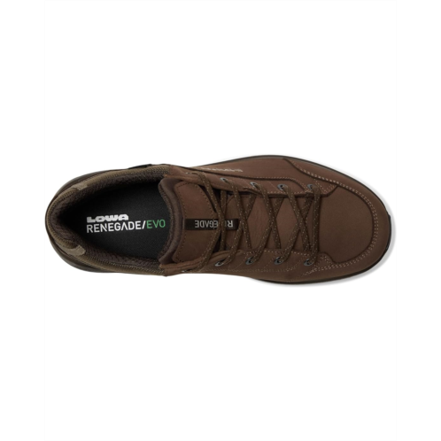 - Keeping the comfort, fit, durability, and performance that have made the Lowa Renegade EVO Lo shoes so popular, and then adding strategic updates: the upper now features fewer seams to reduce potential pressure and wear points. The midsole/outsole package has been revised for even better comfort and support underfoot. These hiking shoes are made of a Heinen terracare Nubuck leather upper, waterproof breathable GTX lining, and double-injection DuraPU/DynaPU insole. These lace-up shoes are modern trail shoes that are destined to become a classic.