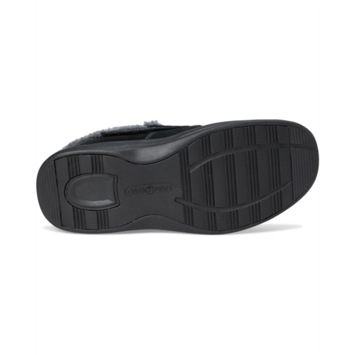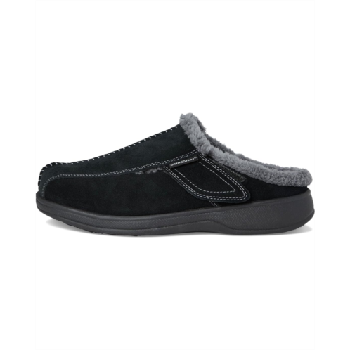 - Experience ultimate comfort and support around the house with Asheville arch support men's slippers. Premium orthotic insoles (removable) provide anatomical arch support and excellent cushioning, enhancing comfort from heel to toe. Ergonomic-Stride sole improves the ease of walking and helps alleviate pain on the heel and ball of the foot caused by flat feet, plantar fasciitis, bunions, arthritis, neuropathy and diabetes. Hook-and-loop straps on both sides of the slipper allow you to perfectly adjust the fit. The wide, roomy toe box provides a pressure free fit and extra room for toe movement.
