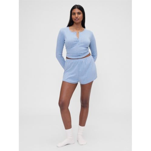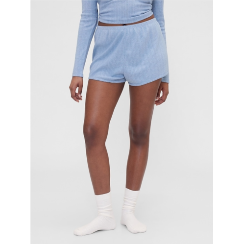 - Soft cotton-blend, pointelle knit pajama shorts.