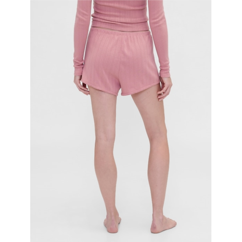 - Soft cotton-blend, pointelle knit pajama shorts.
