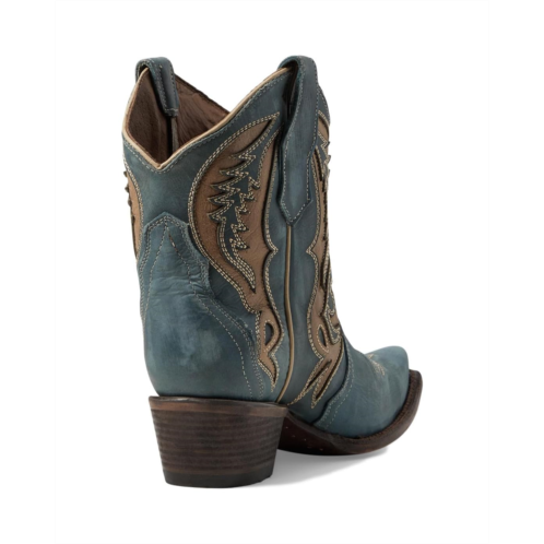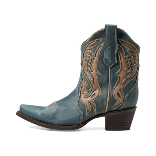 - Style up versatile outfits with the casual and chic Corral Boots L6089 Boots, crafted in a sleek ankle-high silhouette with intricate lady distressed blue embroidery & inlay detailing. The pull-on style boots are crafted with a leather upper, leather lining, and leather insole. The snip toe detail and curved top with pull straps allow ease of wear.