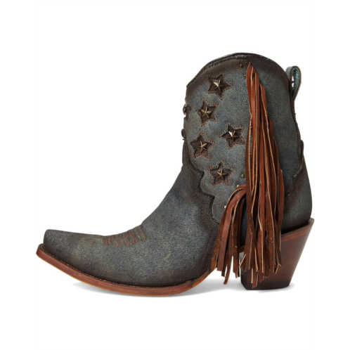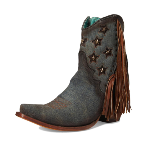 - The modern cowgirl: Step into bold, western-inspired style adorning Corral Boots A4675. These ankle boots combine edgy fringe detailing, intricate denim inlay, and eye-catching star studs for a look that commands attention. The luxurious leather lining, insole, and outsole ensure maximum comfort while providing durability with every step. Featuring a classic snip toe and a sleek Cuban heel, these boots offer a perfect balance of sophistication and flair. The zippered side closure provides ease of wear, making these boots as practical as they are stylish.