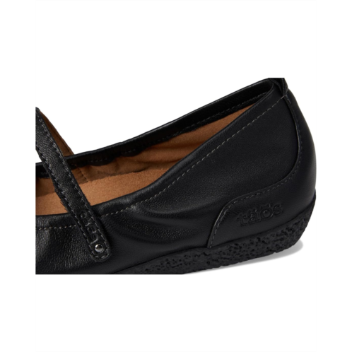- The Taos Footwear Babble is a beautiful, buttery soft ballet flat with classically clean lines and an added leather Mary Jane hook-and-loop strap for a fun finishing touch! A gentle elasticized topline and a flattering rounded square toe character combine with the Curves & Pods removable polyurethane and microfiber covered footbed to delight you in style and support. These come with a full grain leather upper and provide arch & metatarsal support. The rubber outsole is both flexible and durable. Plus, the ankle pull tab allows easy donning and doffing.