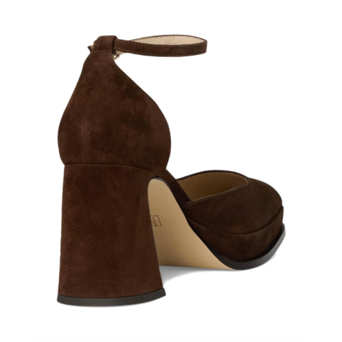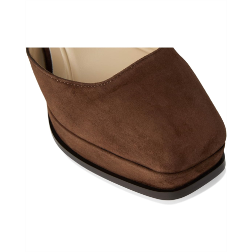 - The Pelle Moda Delores sandal is a striking two-piece platform pump that blends elegance with a touch of edge. It features a soft suede upper, a suede-wrapped block heel and platform, and a square toe for modern flair. The back counter is secured with a slim ankle strap and a small adjustable buckle, offering both style and stability.
