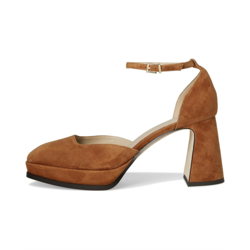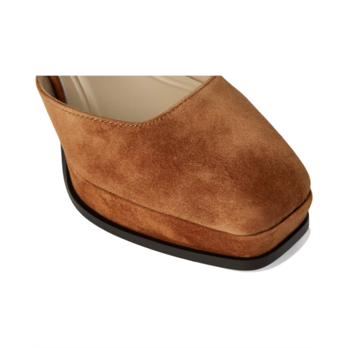 - The Pelle Moda Delores sandal is a striking two-piece platform pump that blends elegance with a touch of edge. It features a soft suede upper, a suede-wrapped block heel and platform, and a square toe for modern flair. The back counter is secured with a slim ankle strap and a small adjustable buckle, offering both style and stability.