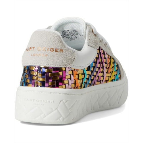 - Let your little one step out with comfort and flaunt a cute vibe wearing Kurt Geiger London Kids Mini Kensington Cupsole Sneakers. The low-top sneakers are designed with a leather upper with a multicolored metallic pattern on the side panels, polyester lining, and a faux leather insole. The lace-up closure ensures a secure fit on the go.