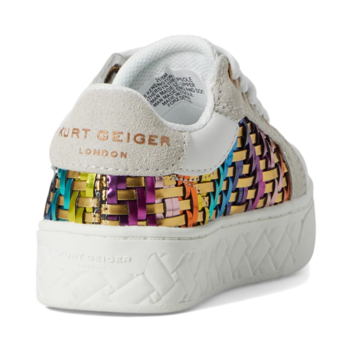 - Let your little one step out with comfort and flaunt a cute vibe wearing Kurt Geiger London Kids Mini Kensington Cupsole Sneakers. The low-top sneakers are designed with a leather upper with a multicolored metallic pattern on the side panels, polyester lining, and a faux leather insole. The lace-up closure ensures a secure fit on the go.