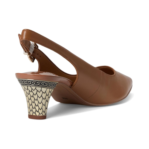 - Slingback strap with an adjustable buckle closure.