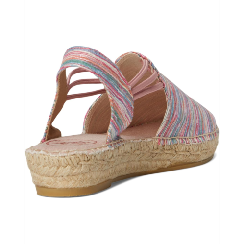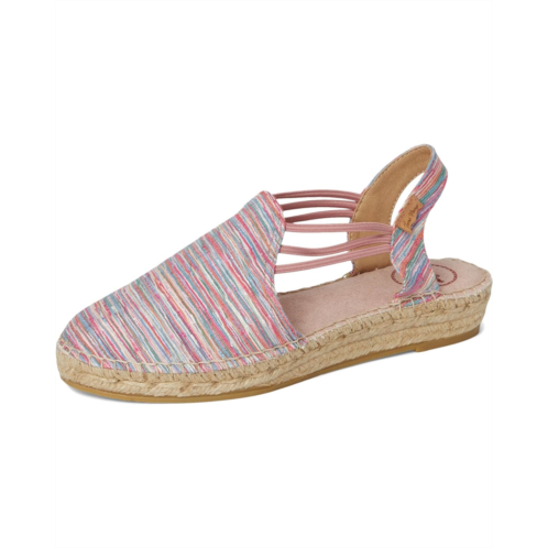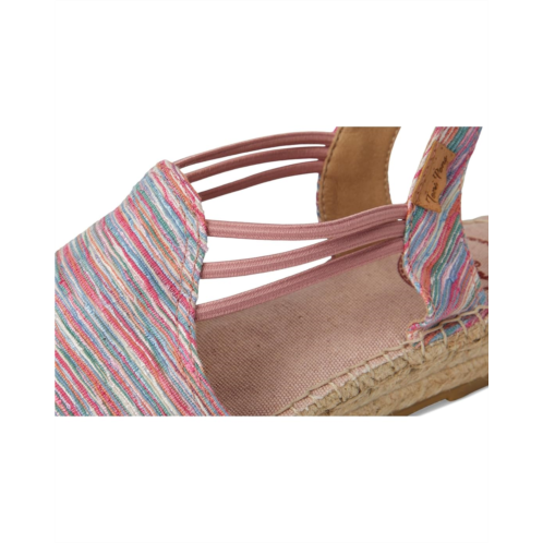- The Toni Pons Noa-RG women's espadrille with elasticated straps is made from fabric with striped bands. The jute wedge has a little height. The base of the sole is made of non-slip rubber. The inner sole is lined with fabric. The union of the fabric and the sole is hand-stitched with cotton thread. Featuring round toe, and flat heel.