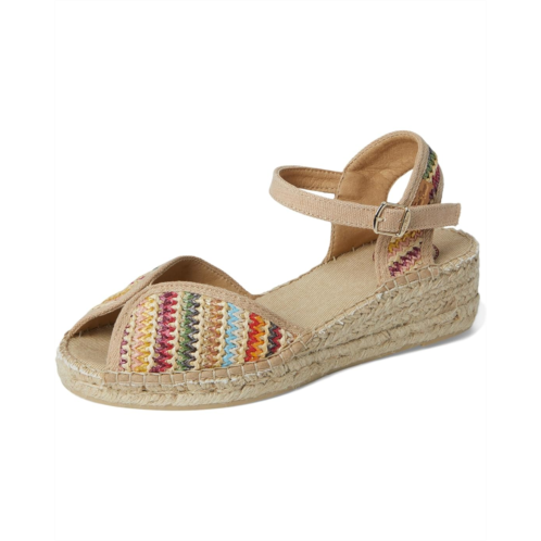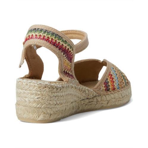 - Toni Pons Bella-Ma sandal is an epitome of style. Crafted from rubber upper, cotton lining, and insole, this pair of sandals features peep toe, outer wedge made of jute and rubber, fabric and sole union are hand-stitched with a high-quality cotton thread, an adjustable strap fastening and a multi-colored woven fabric upper.