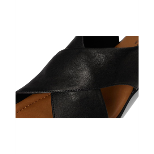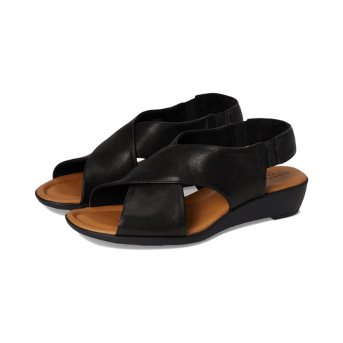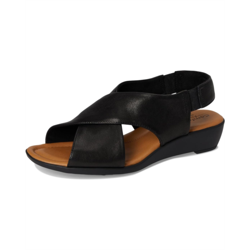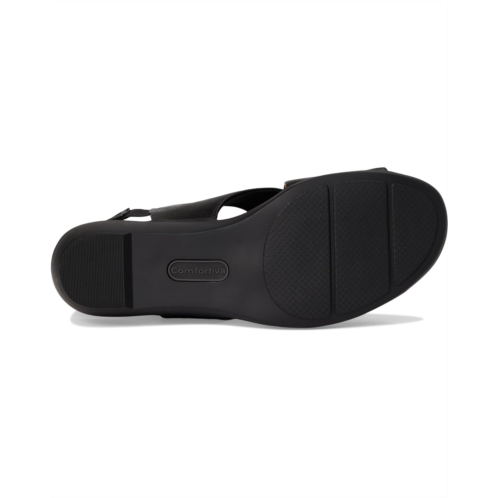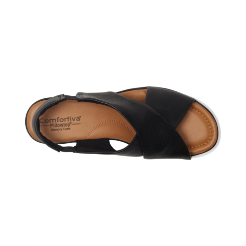 - The Comfortiva Emilee sandals are perfect to pair with different outfits and styles. These heeled sandals are made of a foam insole, microfiber cushioned sock, and faux suede lining. The leather upper is styled with a cross-band design and an elasticized gore sling for a better fit.