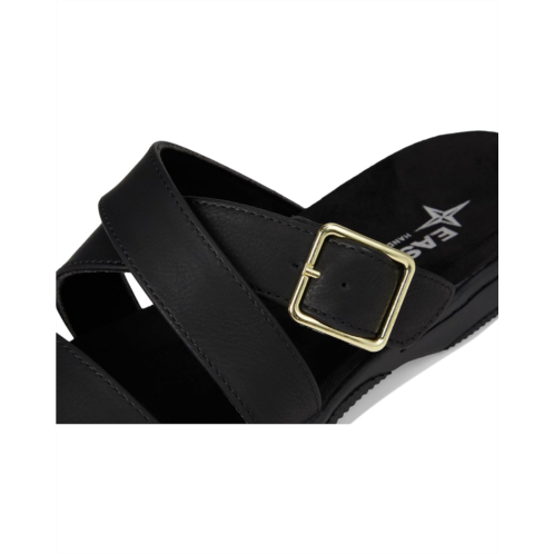 - The Eastland 1955 Edition Sanibel sandal versatile design and lightweight feel are ideal for outdoor summer adventures. It is crafted from leather upper, cotton blend lining, and fabric-lined comfort insole that supports and conforms to the curves of your foot. It features open round toe, strappy design, buckle detailing, and slip-on style.