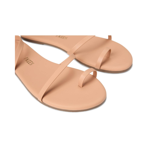 - The TKEES Mia Napa designed for the stylish you. Crafted from leather upper, lining, and insole, this pair of sandals features round toe, three delicate straps that float around the foot for a barely-there look, no-heel, backstrap closure, and slip-on style.