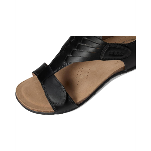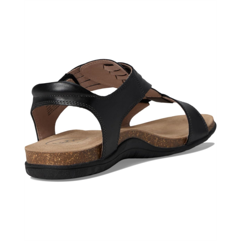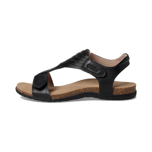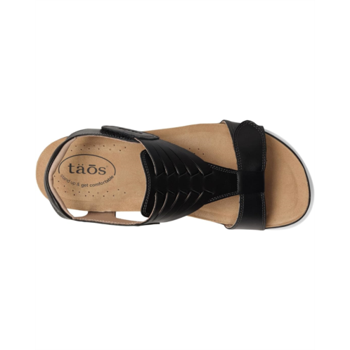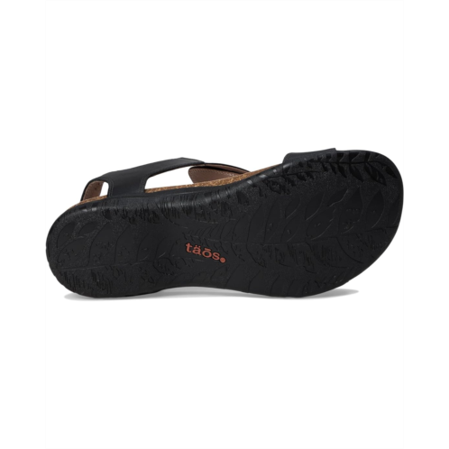 - taos Footwear Wonderful! The new companion cork support style to The Show and sure to be a new favorite! Beautiful woven detailing added to the center strap of the Italian leather upper adds style and richness with a supple soft wrap around your feet. The two adjustable hook-and-loop strap closures offer a secure fit while the detailed contrast stitching and seam design accent the upper. Featuring a rich, soft suede-lined footbed that is treated with a germicidal shield. The lightweight yet supportive cork / EVA midsole, and flexible, durable rubber outsole make this a great go-to everyday sandal.