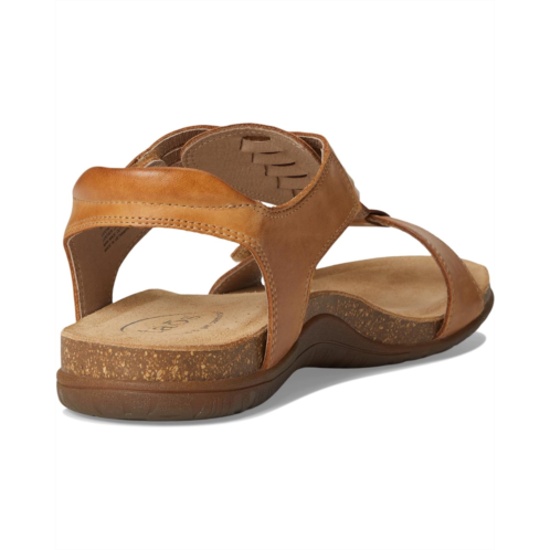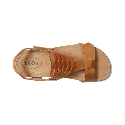 - taos Footwear Wonderful! The new companion cork support style to The Show and sure to be a new favorite! Beautiful woven detailing added to the center strap of the Italian leather upper adds style and richness with a supple soft wrap around your feet. The two adjustable hook-and-loop strap closures offer a secure fit while the detailed contrast stitching and seam design accent the upper. Featuring a rich, soft suede-lined footbed that is treated with a germicidal shield. The lightweight yet supportive cork / EVA midsole, and flexible, durable rubber outsole make this a great go-to everyday sandal.