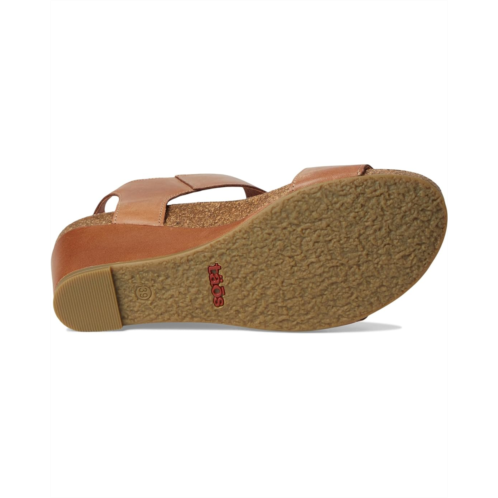 - The blueprint of comfort wearing taos Crafted with luxuriously smooth Italian leather, this wedge sandal is your ticket to effortless sophistication. The hook-and-loop closure ensures a custom fit, while the open-toe design keeps things breezy and chic. Experience next-level support with a padded contour footbed lined in suede, offering enhanced arch and metatarsal support for a truly cushioned stride. The lightweight cork insole and durable rubber outsole work together to provide flexibility, stability, and shock absorption.