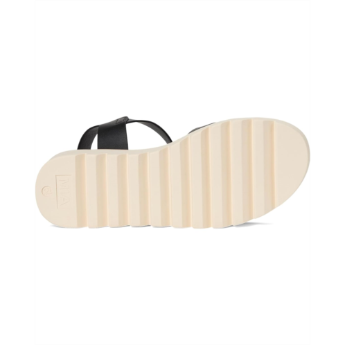 - Designed to fit seamlessly to your everyday lifestyle, the MIA Jovie Sandals feature a strappy faux leather upper with a silvertone buckled closure at the ankle, a soft faux leather lining, and a comfortable cushioned insole.