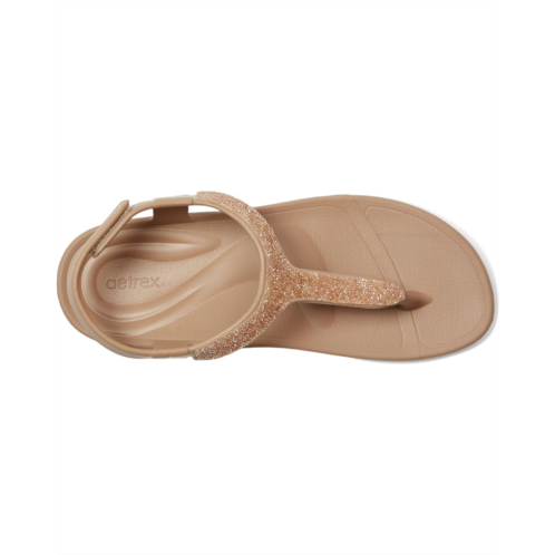 - Experience style and comfort choosing the Aetrex Skyler Thong Sandal. Designed with Aetrex Orthotic technology, this sandal offers excellent support and balance. The UltraSky EVA material provides extra cushioning and is highly durable. The Cobra Orthotic footbed relieves pressure, and the raised met pad cushion ensures your feet stay comfortable. This sandal offers a modern look, making it perfect for summer and beach outings. The Aetrex Orthotic System is built-in to every pair, features arch support that helps to stabilize your body, align your feet and relieve common foot pain.