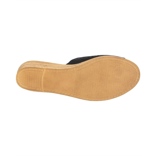 - Synthetic cork wedge absorbs shock and elevates your style.