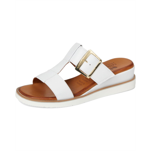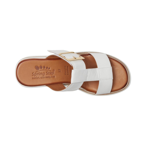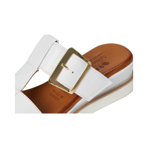 - Combine unique style, and ultimate comfort wearing the wedge heel Spring Step Seaport. Crafted from leather upper, lining, and insole, this pair of sandals features open round toe, double strap detailing with accented hook-and-loop buckle, elevating this easy slip on style, and brand detailing on the footbed.