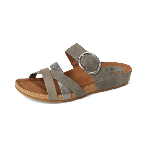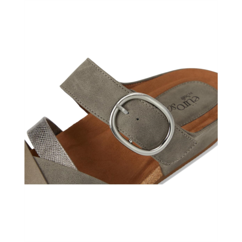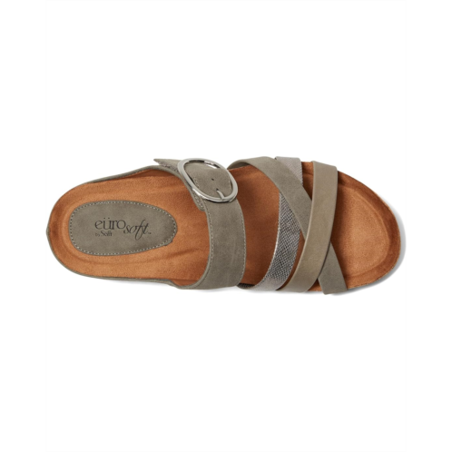 - Walk gracefully wearing the EuroSoft Genalyn. Crafted from faux leather upper, faux suede lining, and foam insole, this pair of footwear features open round toe, slip-on style, padded micro suede footbed, adjustable hook and loop strap, multi material upper, cork wrapped footbed.
