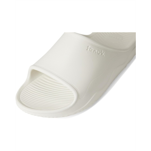 - The Sanuk Beer Foamie Slides are buoyantly designed injection molded sandals for the cush your feet have been yearning for. These quick-drying fully-molded EVA slide sandals come with an arch support. They are made of an EVA upper and insole for cushioned comfort. Water-friendly and durable, these slide slippers feature a non-marking EVA outsole with a wave-inspired design to expel water and increase traction.