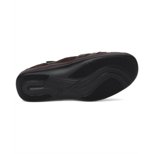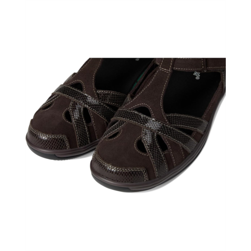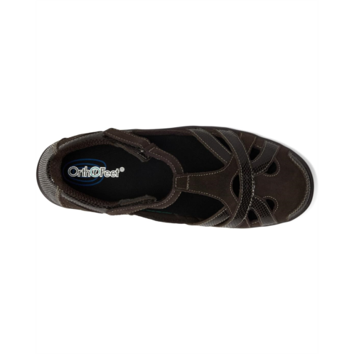 - The lightweight and casual Orthofeet Juno sandals provide full support and cushion all day long, while allowing extra room in the toe area, and a comfortable fit. These orthopedic walking sandals feature Ortho-Cushion technology, which helps relieve foot and heel pain, making them ideal for those with sensitive, tired feet. Their soft, padded suede inner lining with no overlays eliminates irritation, while the premium orthotic EVA insole with anatomical arch support re-aligns the foot and entire body posture. The soft, suede upper of these sandals features an adjustable hook-and-loop strap that allows for fit flexibility. Their wide toe box design alleviates pressure on swollen feet, bunions, and hammertoes. Walk with superior comfort and support wearing these slip-on sandals.