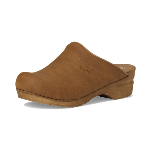 - Good for you, good for the planet: Sanita Vegan Ellis Clogs. Embrace the perfect fusion of eco-conscious design and everyday comfort with these chic, open-back vegan clogs. Crafted from durable, recycled P.E.T vegan 'leather,' the faux leather upper exudes modern style while staying kind to the planet. Featuring an anatomically correct footbed with a cushioned microfiber insole, these APMA-approved clogs provide exceptional support and breathability for all-day wear. The padded instep ensures extra comfort, while the lightweight polyurethane rocker-bottom outsole delivers durability and shock absorption for effortless strides. With an easy slip-on design, Sanita combines convenience, style, and sustainability in one professional-grade package.