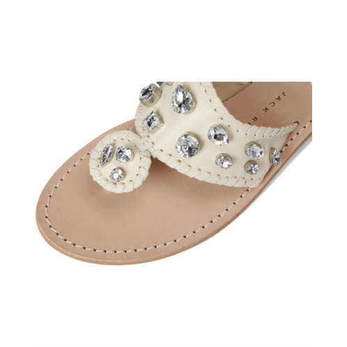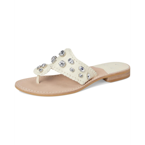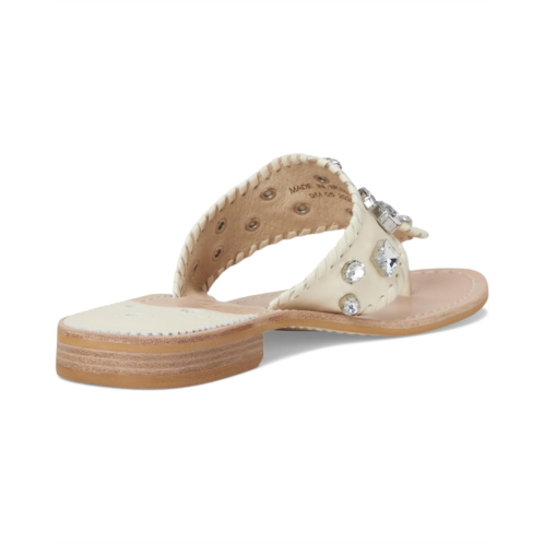 - Classic and stylish, the Jack Rogers Jacks Flat Jeweled Sandals pair perfectly with your party outfits and casual styles. Their leather upper features jewel detail for an eye-catching appeal. The synthetic insole and leather lining make them comfortable to wear for long hours. Walk with style and comfort wearing these jeweled sandals.