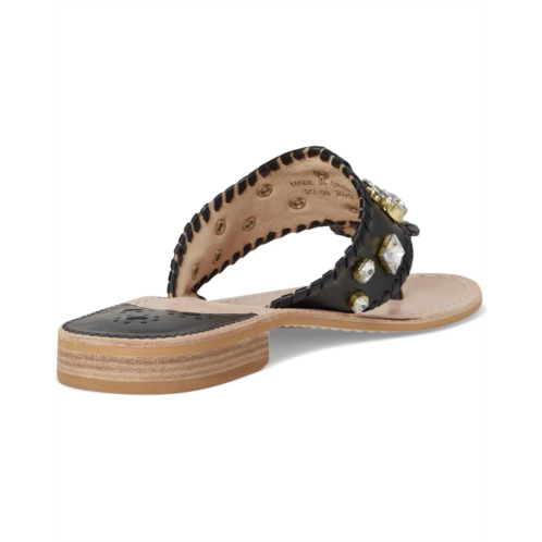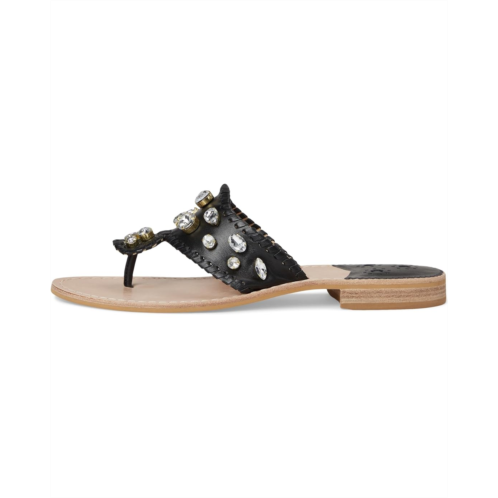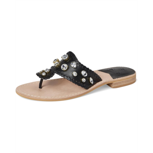 - Classic and stylish, the Jack Rogers Jacks Flat Jeweled Sandals pair perfectly with your party outfits and casual styles. Their leather upper features jewel detail for an eye-catching appeal. The synthetic insole and leather lining make them comfortable to wear for long hours. Walk with style and comfort wearing these jeweled sandals.