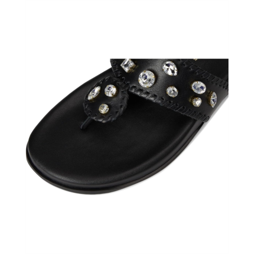 - The Jack Rogers Jacks Sport Jeweled Sandals are where iconic style meets effortless comfort. Designed with a luxe leather upper and lining, these sandals bring timeless elegance to your warm-weather wardrobe, while the synthetic insole offers cushioned support for all-day wear. The TPR outsole ensures durability and traction, making every step as steady as it is stylish. Featuring a classic thong strap and an easy slip-on design, these sandals are the perfect mix of polished ease and modern glam.