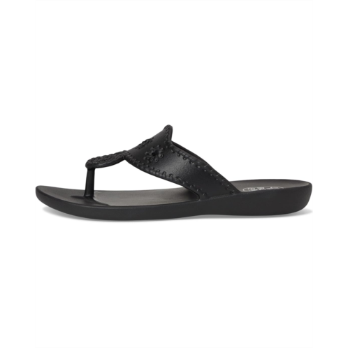 - The Jack Rogers Jacks Eva features a lightweight, waterproof design made from ethylene vinyl acetate. It offers a slip-on fit and has an open, round toe silhouette. In addition, the signature whipstitching and rondelle details that define the classic look.