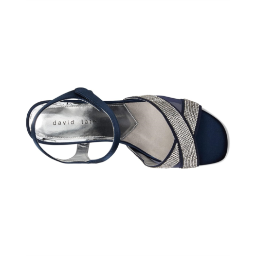 - Rhinestone-encrusted straps add to modern style to the David Tate Holiday heeled sandal.