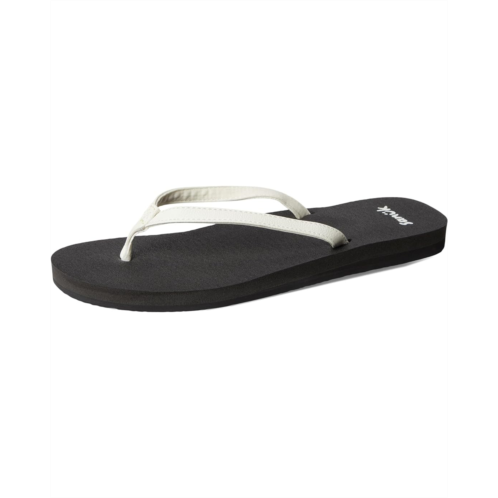 - Enjoy every step on the sand wearing the Sanuk Yoga Joy II. Crafted from synthetic leather upper, jersey lining made with GRS certified recycled polyester, and rubber insole, this pair of footwear features round toe, thong style strap, original memory foam Yoga Mat footbed, and brand detailing on the footbed.